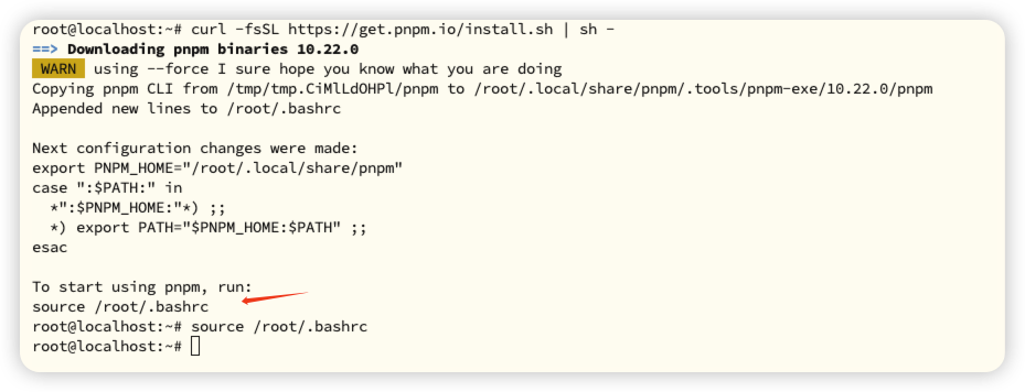 curl -fsSL https://get.pnpm.io/install.sh | sh -