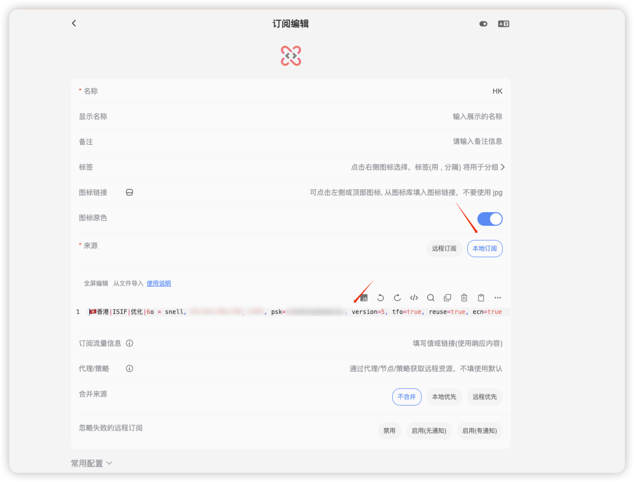 自建节点使用本地订阅