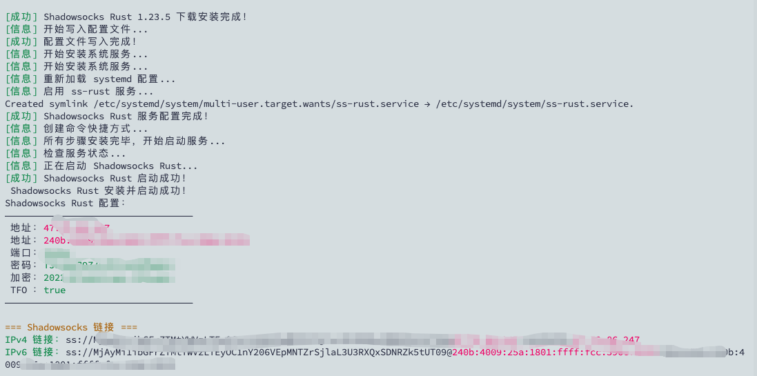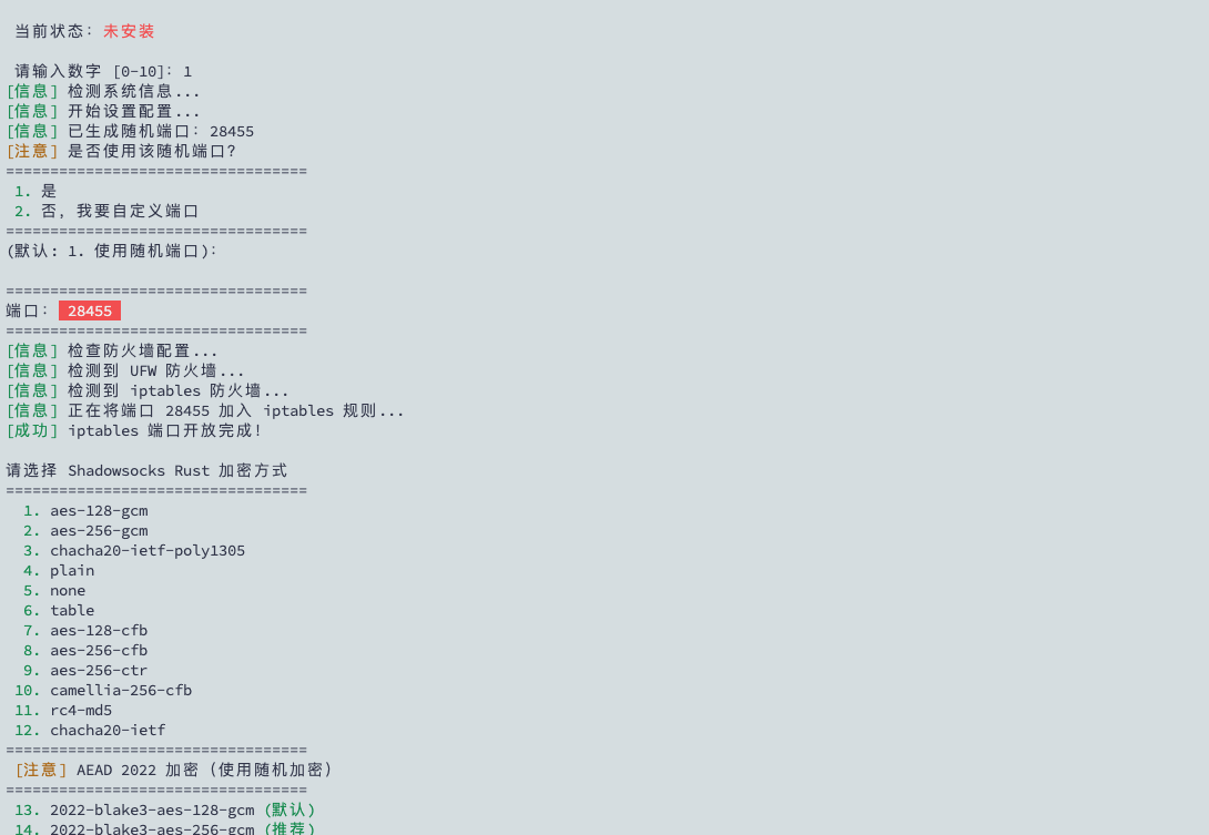 到此就完成SS2022的安装,需记录端口,后面配置IX转发时需要用到
